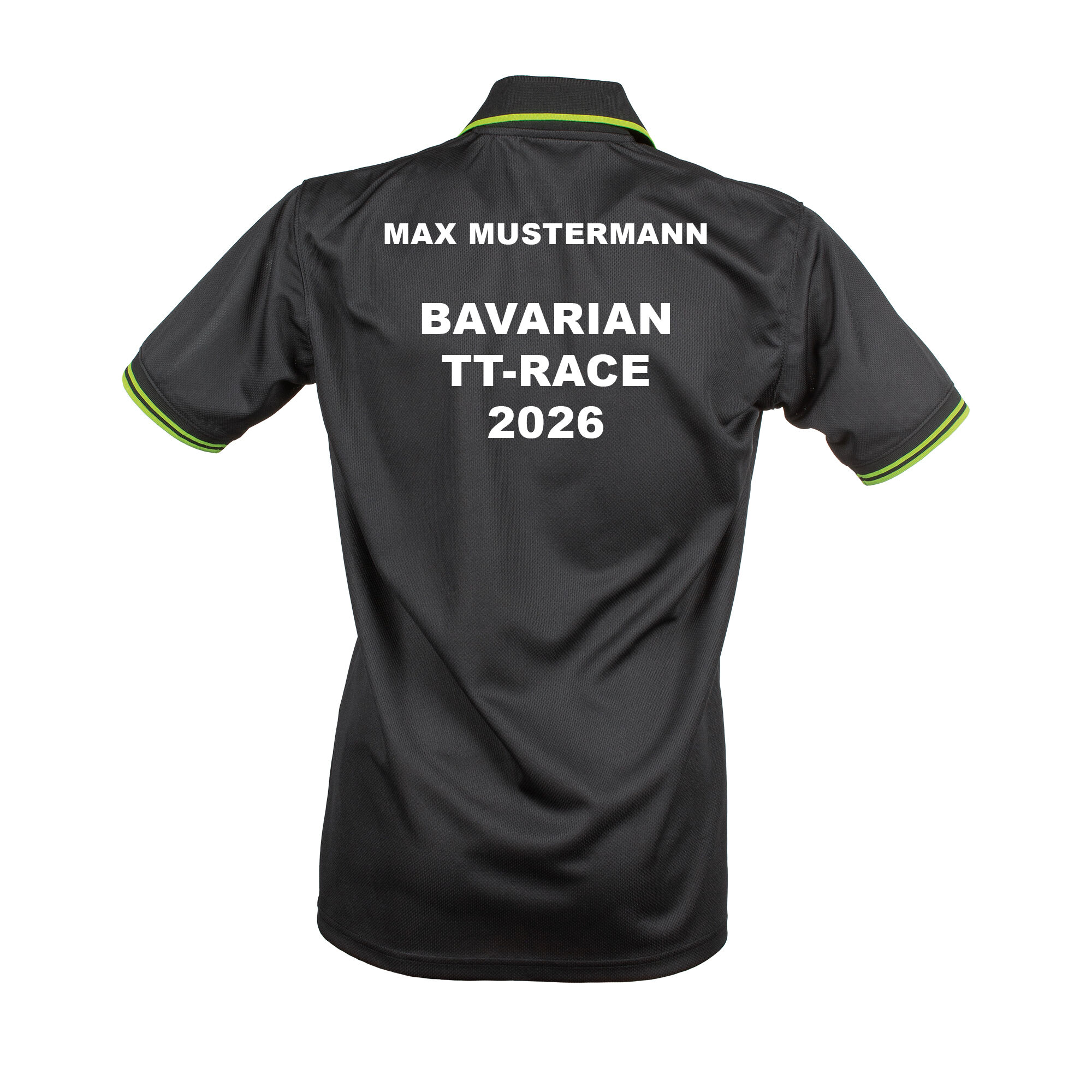 Special Event-Trikot für die Teilnehmer der Bavarian Race Saison 2026 zum unschlagbaren Preis von 29,90 € inklusive Flexdruck. Das Trikot wird auf der Rückseite mit dem Schriftzug „Bavarian TT-Race 2026“ und auf Wunsch mit individuellen Namen geflext.