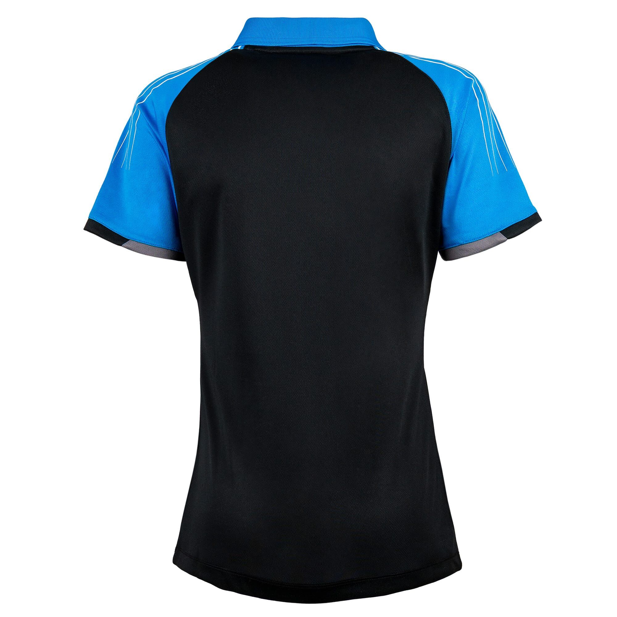 Edles Lady-Shirt mit leicht tailliertem Damen-Schnitt aus atmungsaktiver Sublimation-Mikrofaser mit innovativem Design. Die optimierte Feuchtigkeitsregulierung und der elegante Kragen sorgen auch bei längeren Matches und Trainingseinheiten für besten Tragekomfort. Farbe: schwarz Material: 100% Polyester Größen: XS – XL