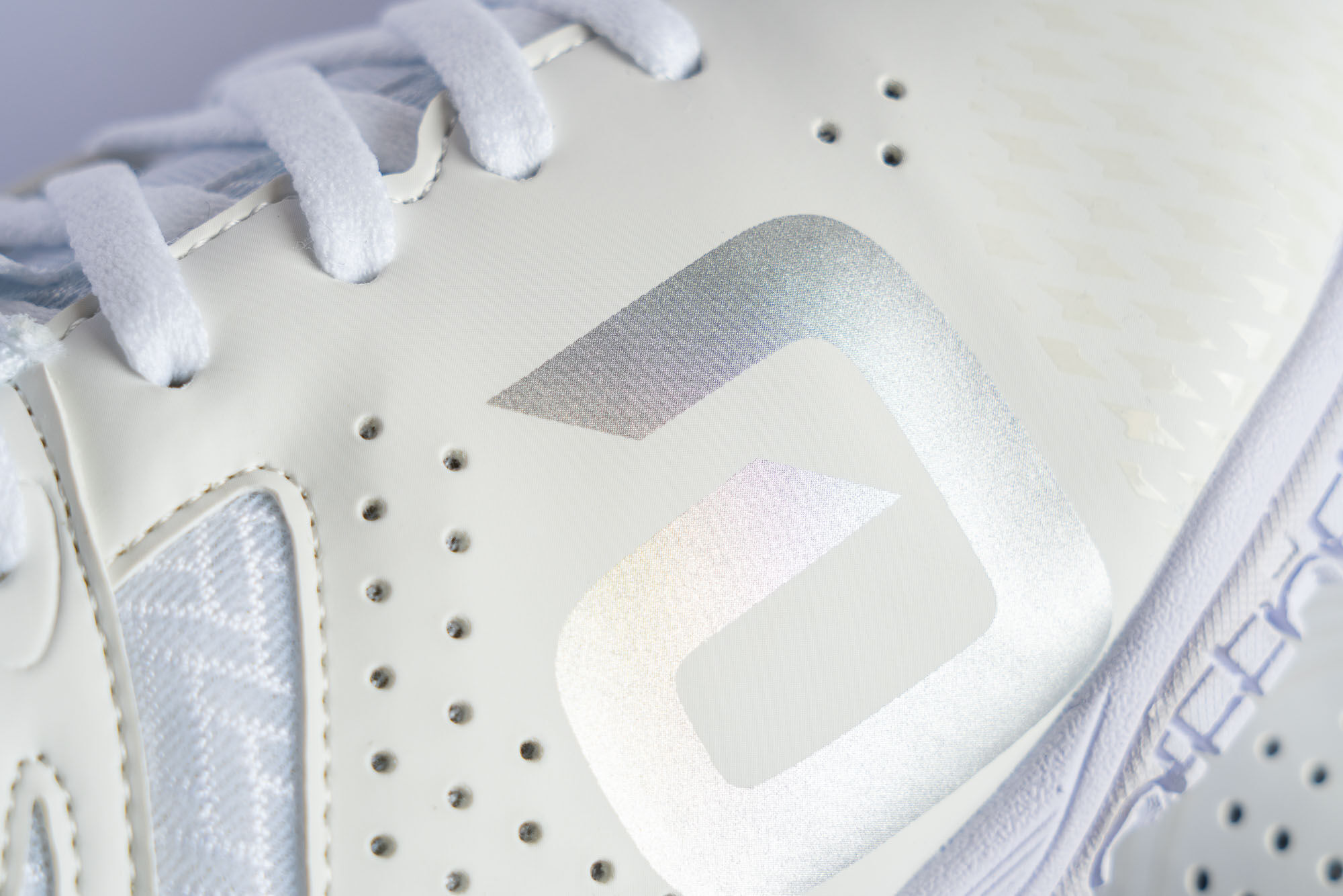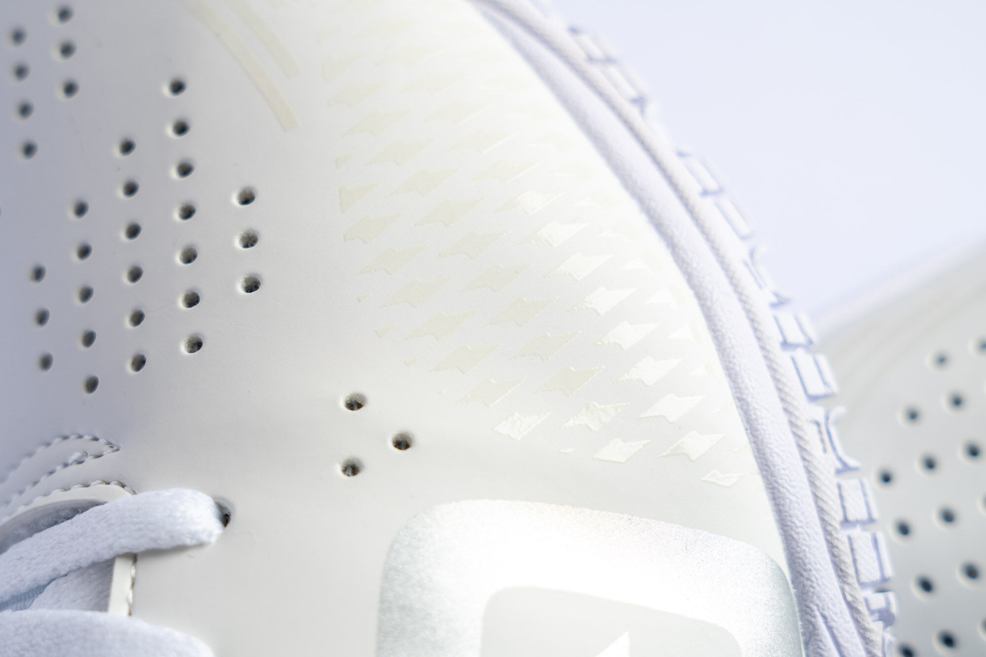 - Materialverstärkung an der äußeren Vorderseite stützt den Schuh dort, wo die höchste Krafteinwirkung stattfindet.
